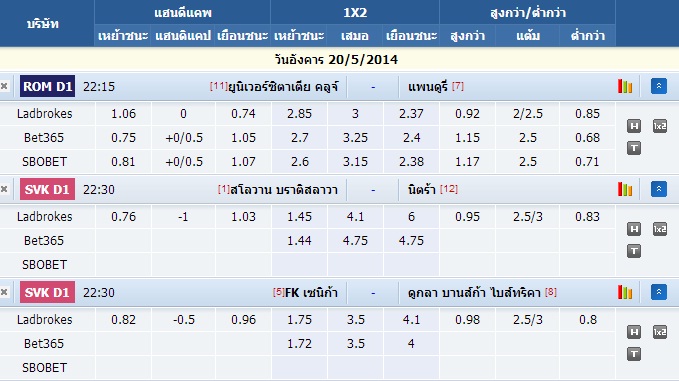 ดูราคาบอล เรตบอลล่าสุด ของวันนี้ ล่วงหน้าจากต่างประเทศ อาทิ Ladbrokes, Bet365, SBOBET เปรียบเทียบราคาบอล ภาษาไทย